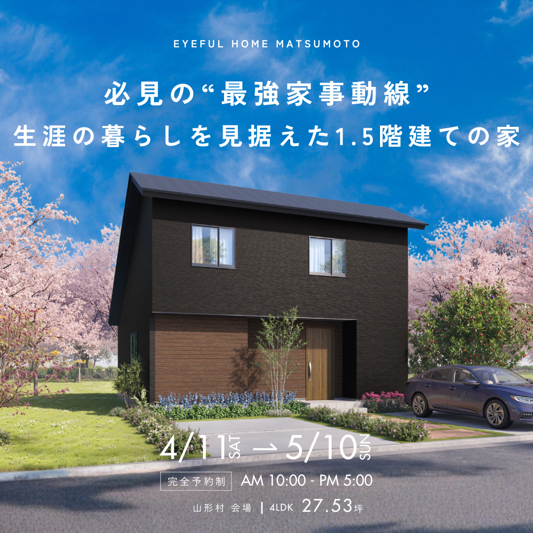 【山形村会場】必見の“最強家事動線” 生涯の暮らしを見据えた1.5階建ての家《完成見学会》