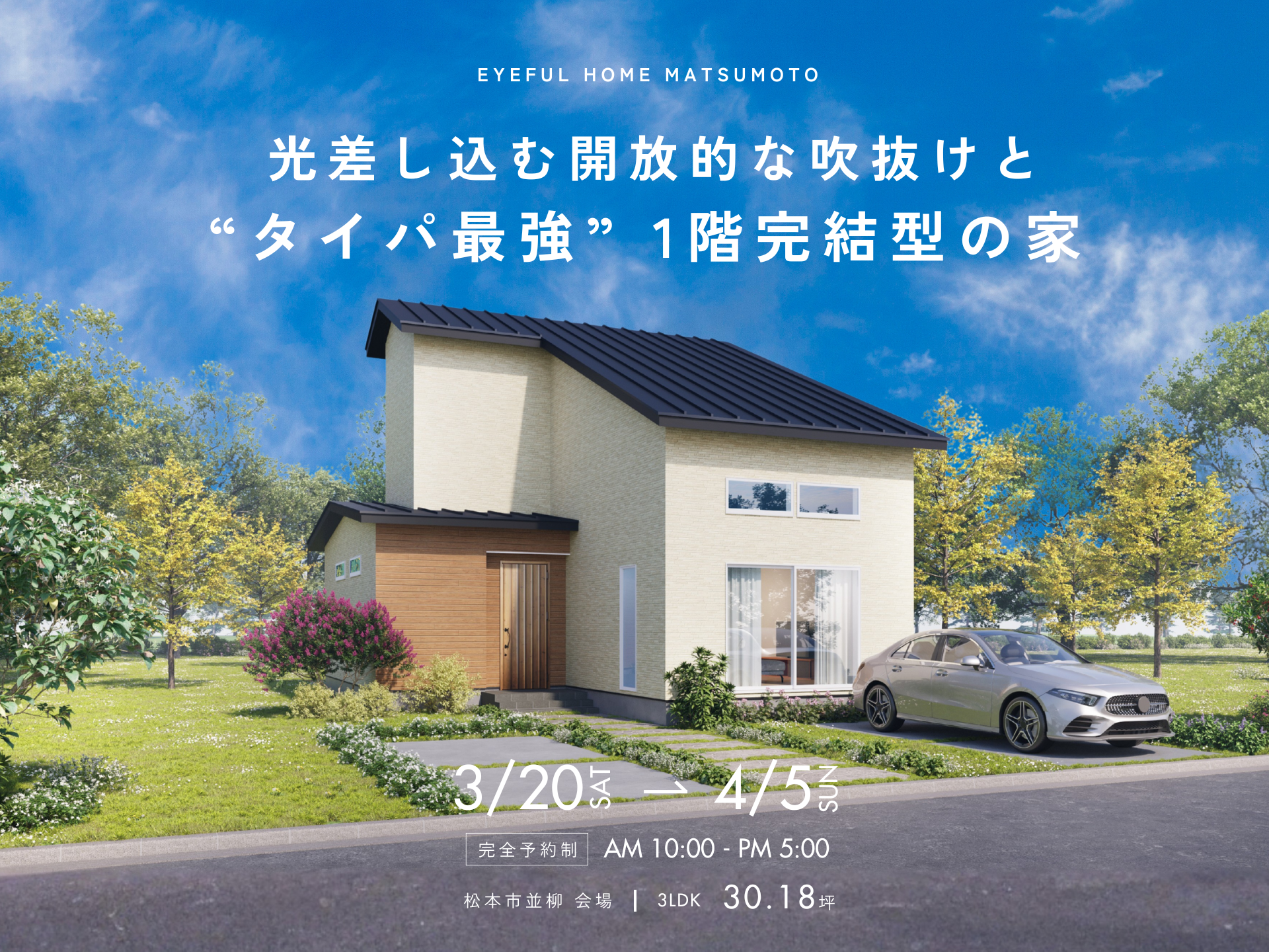 【松本市並柳会場】光差し込む開放的な吹抜けと “タイパ最強”1階完結型の家《完成見学会》