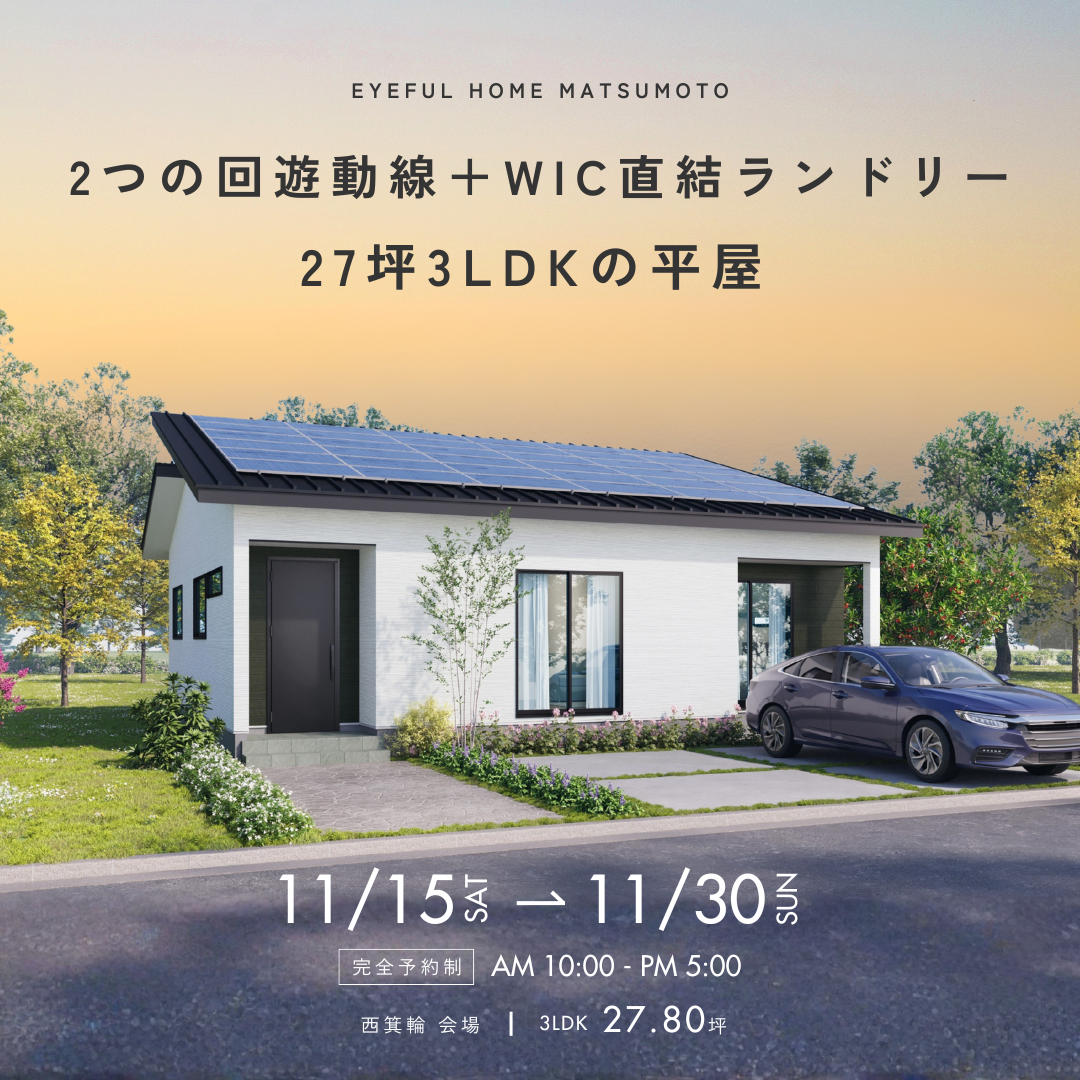 【伊那市西箕輪会場】2つの回遊動線+WIC直結ランドリー 27坪3LDKの平屋《完成見学会》