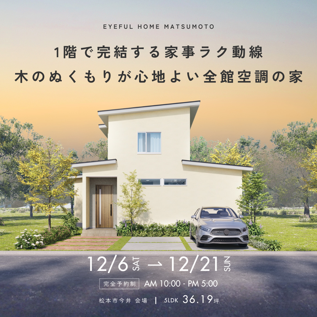 【松本市今井会場】1階で完結する家事ラク動線 木のぬくもりが心地よい全館空調の家《完成見学会》